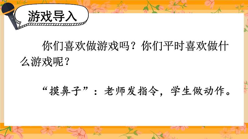 (2)教师引导学生做“摸鼻子”的游戏,教师发指令,学生做动作。