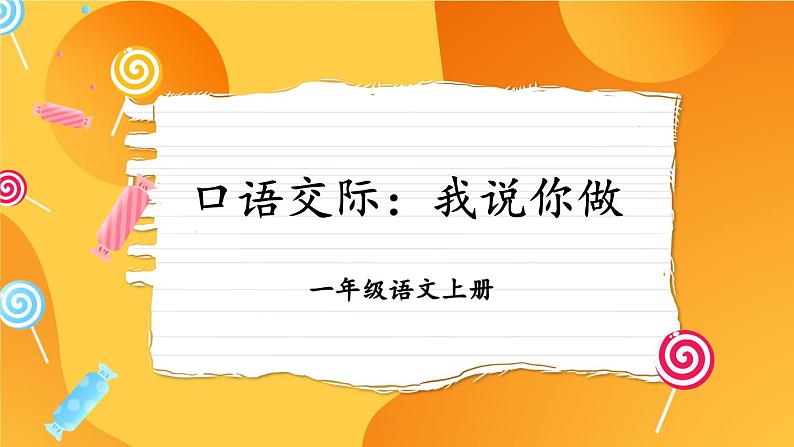 这是一份语文一年级上册口语交际 我说你做精品ppt课件,文件包含人教部编语文1上《口语交际我说你做》课件pptx、人教部编语文1上《口语交际我说你做》教案doc、亲宝儿歌之拍手歌_超清mp4等3份课件配套教学资源,其中PPT共21页, 欢迎下载使用。