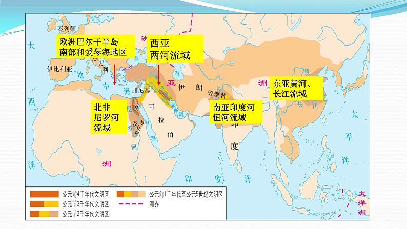 1、大河文明 (埃及、亚述、古巴比伦等国):以武力战争方式扩展2、海洋文明(古希腊等城邦国家):移民是扩展主要方式