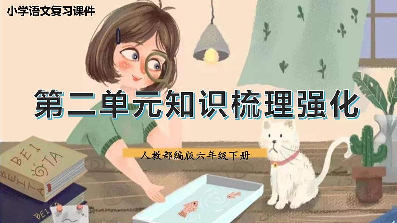 新课导入: 今天我们复习的内容是六年级下册第二单元,老师将从单元主体目标、字词句以及语文园地相关重点知识入手,带领大家回顾知识,加深理解!