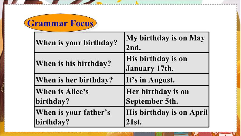 人教新目标 (Go for it) 版七年级上册Unit 8 When is your birthday?Section A背景图课件ppt
