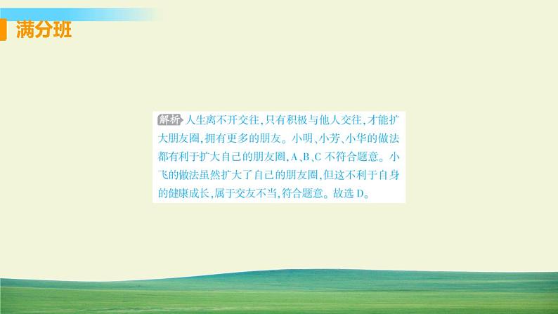 这是一份道德与法治七年级上册第四课 友谊与成长同行 本课综合演练课件PPT,共9页。PPT课件主要包含了满分班等内容,欢迎下载使用。