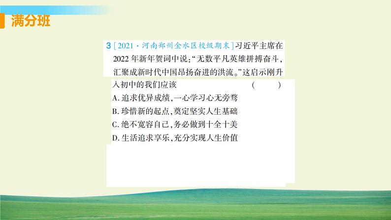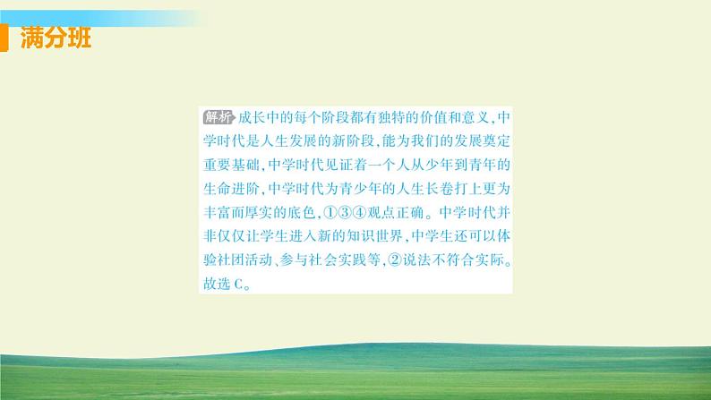 这是一份道德与法治七年级上册第一课 中学时代 本课综合演练课件PPT,共10页。PPT课件主要包含了满分班等内容,欢迎下载使用。
