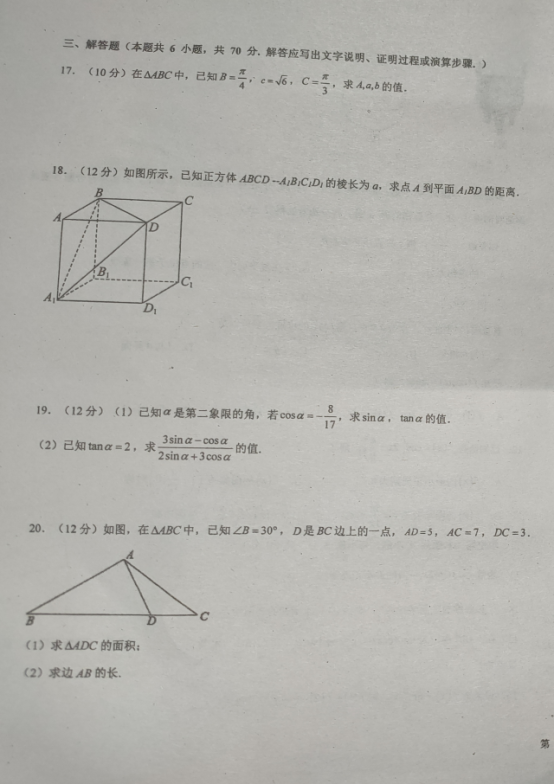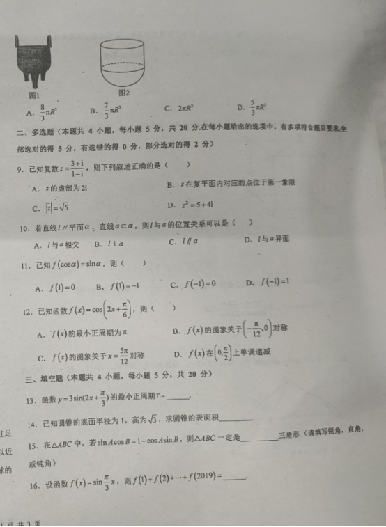 这是一份2021届海南省白沙黎族自治县白沙中学高一下学期数学期中试题,共4页。