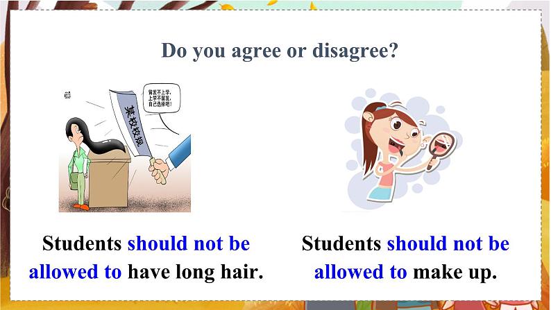 What can you do at school? What can’t you do at school?Do you agree or disagree?