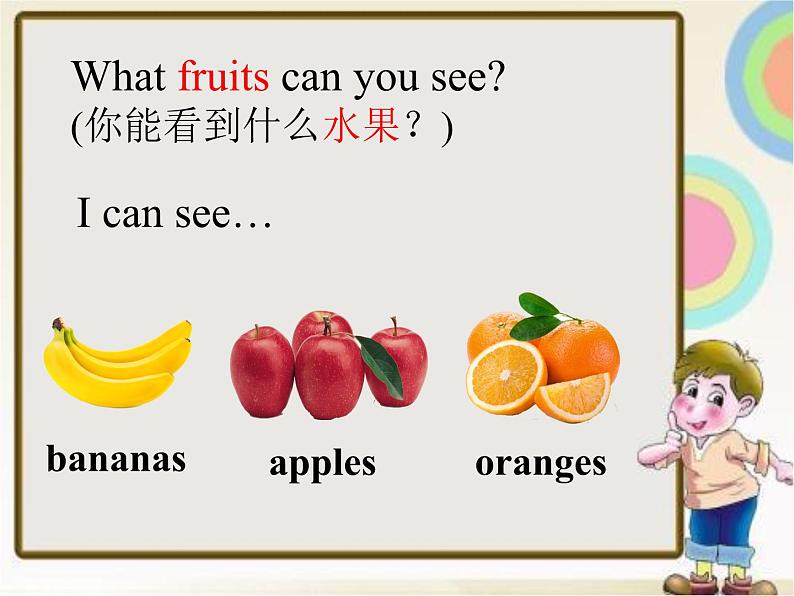 What fruits can yu see?(你能看到什么水果?)