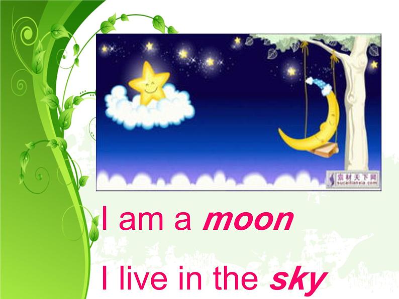 这是一份小学英语外研版 (一年级起点)二年级上册Unit 2 Where do you live?课文配套ppt课件,共10页。PPT课件主要包含了moon,sky等内容,欢迎下载使用。