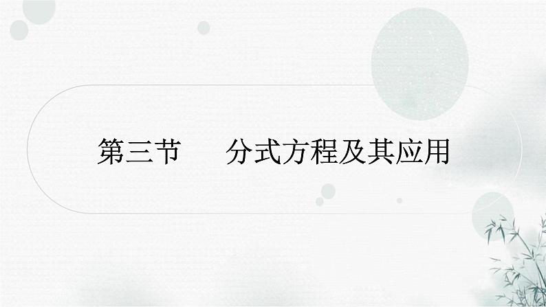 中考数学复习第二章方程(组)与不等式(组)第三节分式方程及其应用课件: 这是一份中考数学复习第二章方程(组)与不等式(组)第三节分式方程及其应用课件,共24页。PPT课件主要包含了x=3,m2且m≠3等内容,欢迎下载使用。