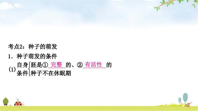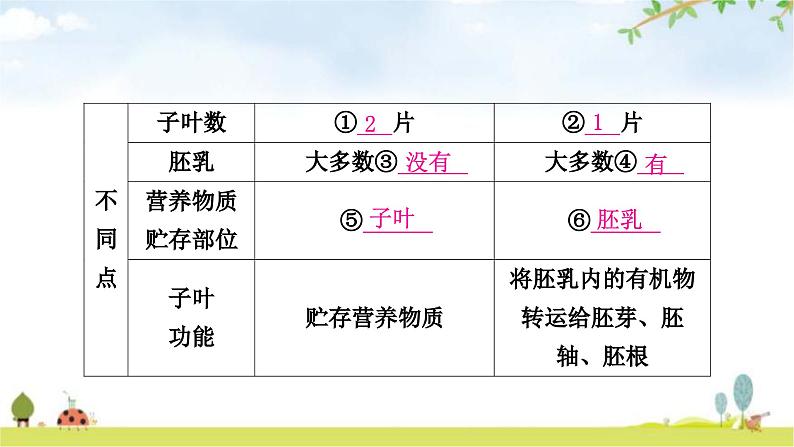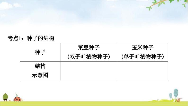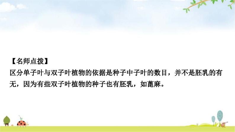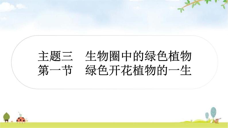 人教版中考生物复习主题三生物圈中的绿色植物第一节绿色开花植物的一生练习课件: 这是一份人教版中考生物复习主题三生物圈中的绿色植物第一节绿色开花植物的一生练习课件,共31页。PPT课件主要包含了单子叶,受精卵等内容,欢迎下载使用。