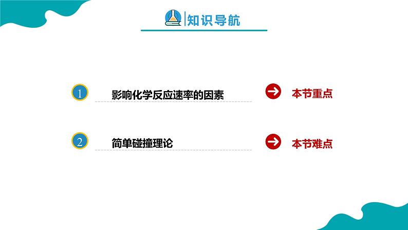 选择性必修1第二章 化学反应速率与化学平衡第一节 化学反应速率说课ppt课件: 这是一份选择性必修1第二章 化学反应速率与化学平衡第一节 化学反应速率说课ppt课件,共41页。PPT课件主要包含了压强温度,要点二活化能,I·―→I2,每一步,反应机理,有效碰撞等内容,欢迎下载使用。