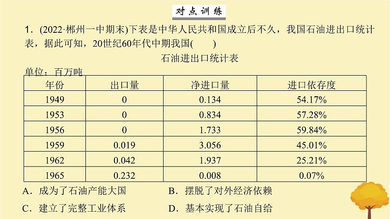 2024届高考历史一轮总复习第七单元中华人民共和国成立和社会主义革命与建设第20讲改革开放以来的巨大成就课件: 这是一份2024届高考历史一轮总复习第七单元中华人民共和国成立和社会主义革命与建设第20讲改革开放以来的巨大成就课件,共27页。PPT课件主要包含了续上表,答案D,答案B,答案C等内容,欢迎下载使用。