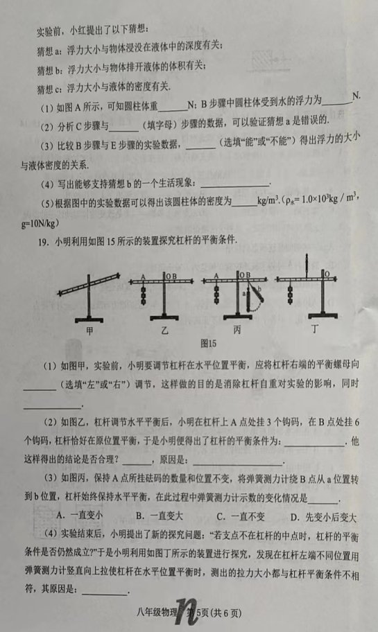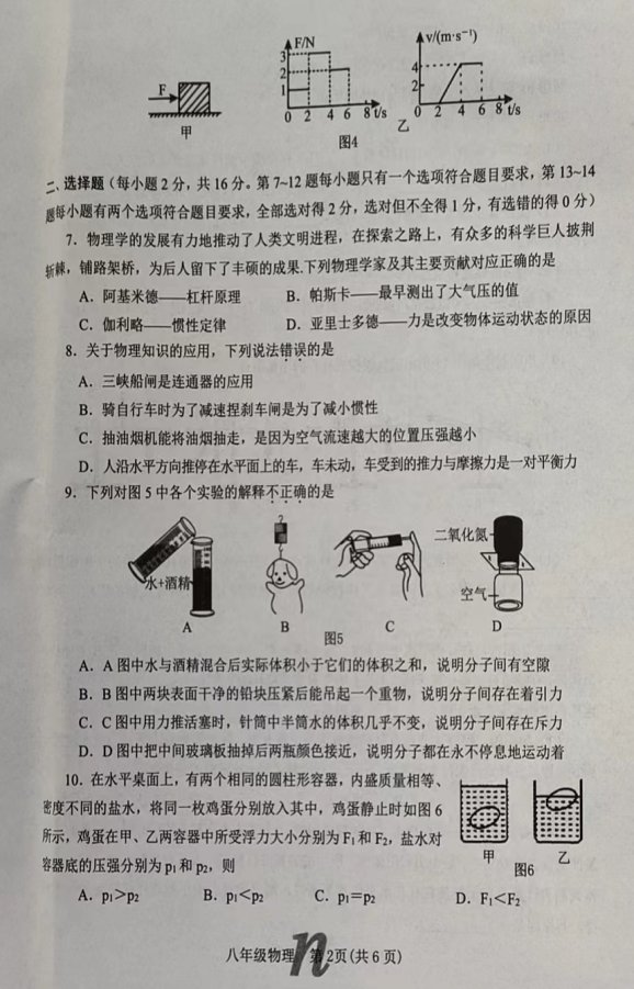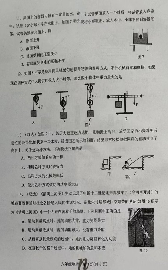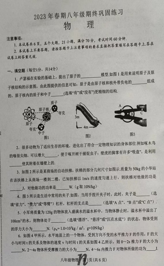 河南省南阳市南召县2022-2023学年八年级下学期6月期末物理试题(图片版含答案)