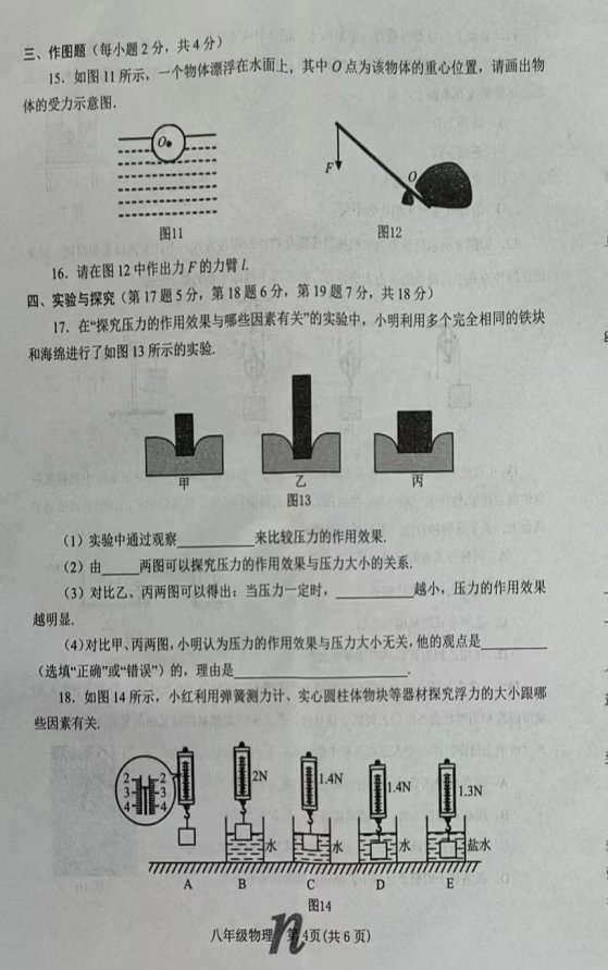 河南省南阳市社旗县2022-2023学年八年级下学期期末物理试卷(图片版含答案):