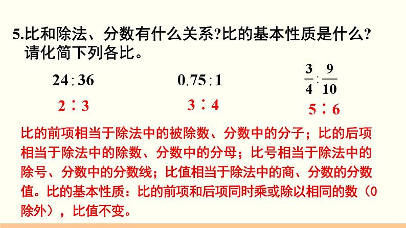 5.比和除法、分数有什么关系?比的基本性质是什么? 请化简下列各比。