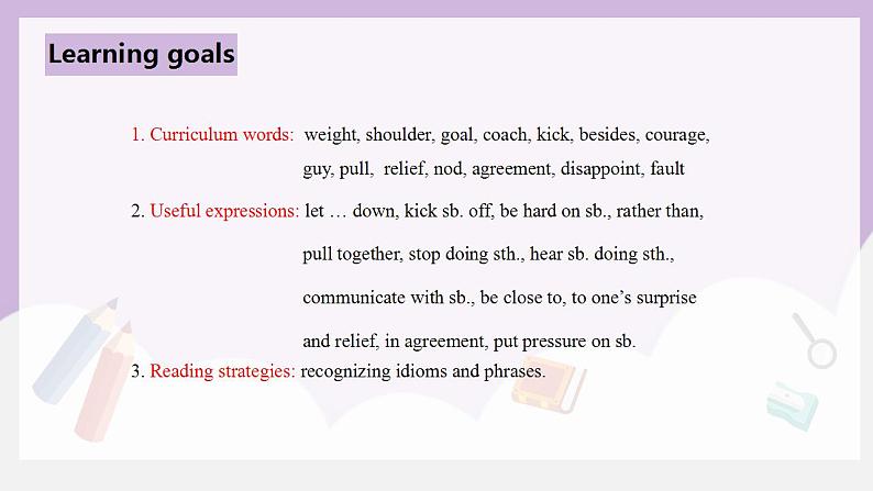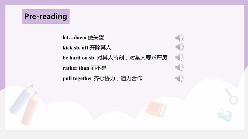 2. Useful expressins: let … dwn, kick sb. ff, be hard n sb., rather than, pull tgether, stp ding sth., hear sb. ding sth., cmmunicate with sb., be clse t, t ne’s surprise and relief, in agreement, put pressure n sb.