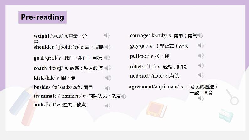 这是一份英语九年级全册Unit 11 Sad movies make me cry.Section B完美版课件ppt,文件包含人教九下Unit11第4课时SectionB1a-1e课件pptx、letdownmp3、weightmp3、teammatemp3、shouldermp3、reliefmp3、ratherthanmp3、pullmp3、pulltogethermp3、nodmp3、kickmp3、U11B1cmp3、kicksboffmp3、guymp3、goalmp3、faultmp3、couragemp3、coachmp3、besidesmp3、behardonsbmp3、agreementmp3、当幸福来敲门-Whatishappinessmp4等22份课件配套教学资源,其中PPT共23页, 欢迎下载使用。