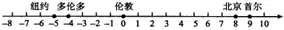 点B与点D B. 点A与点C C. 点A与点D D. 点B与点C3.数轴上表示整数的点称为整点.某数轴的单位长度是1厘米,若在这条数轴上任意画出一条长为2004厘米的线段AB,则线段AB盖住的整点的个数是( ) A.2002或2003 B.2003或2004 C.2004或2005 D.2005或2006 4.北京、纽约等5个城市的国际标准时间(单位:小时)可在数轴上表示如图