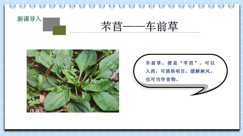 翻译:车前草采呀采,提起衣襟兜起来。车前草采呀采,掖起衣襟兜回来。