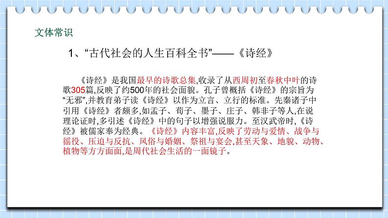 1、“古代社会的人生百科全书”——《诗经》
