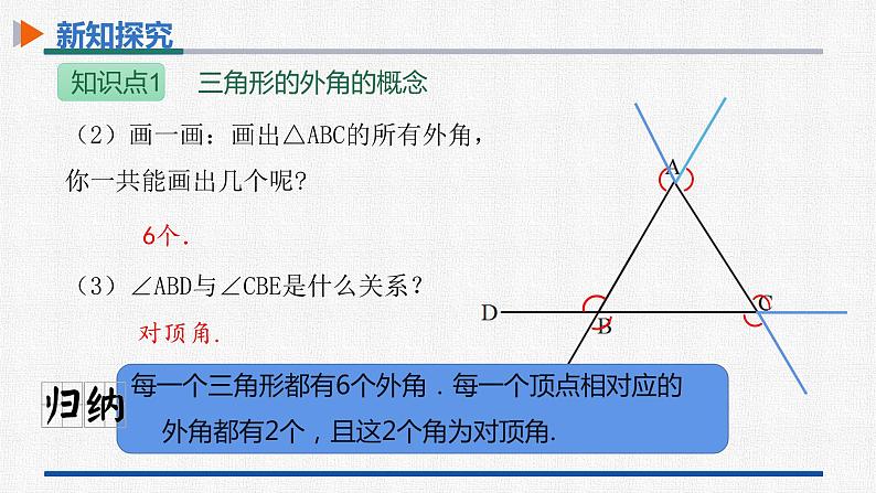 (2)画一画:画出△ABC的所有外角,你一共能画出几个呢?