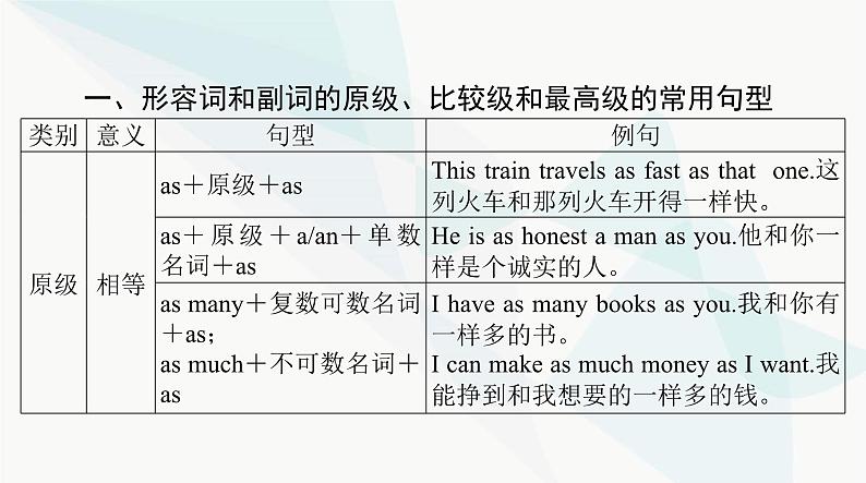 一、形容词和副词的原级、比较级和最高级的常用句型