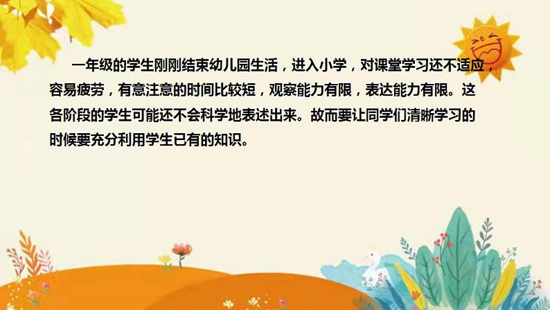 展开《乘车》说课稿北师大版小学数学一年级上册 大家好,今天我说课的内容是北师大版小学数学一年级上册第三单元第十课时《乘车》。下面我将从说教材、说学情、说教学目标、说教学重难点、说教法学法、说教学过程、课堂练习和板书设计及教学反思这九个方面展开。接下来开始我的说课。恳请大家批评指正!一、说教材 今天我说课的内容是九年义务教育课程标准实验教材(北师大版)小学数学第三单元第七课时《乘车》。本课旨在乘车是乘客上下车的情境,正好贴切地演示了连加、连减、加减混合运算的实际体现,帮助学生理解连加、连减与加减混合运算的含义,使他们知道这些算式的来龙去脉,也为今后解决实际问题打下基础。注重培养学生的探究意识。在学生看懂图意、叙述故事之后,鼓励学生把故事的情境用摆学具的方式反映出来,使每一个学生头脑中都有一副“乘车”的景象,深入理解三个数之间的运算关系,最后列式解答问题,并培养同学们对数学的兴趣且爱上数学。二、说学情 一年级的学生刚刚结束幼儿园生活,进入小学,对课堂学习还不适应,容易疲劳,有意注意的时间比较短,观察能力有限,表达能力有限。这各阶段的学生可能还不会科学地表述出来。故而要让同学们清晰学习的时候要充分利用学生已有的知识。三、说教学目标 1.在具体的情境活动中,体会连加、连减、加减混合运算的意义。 2.掌握连加、连减、加减混合运算的运算顺序,并能正确地进行计算。3.通过自主探索、合作交流,发展初步的探索意识和解决问题的能力。四、说教学重难点通过观察上下车的情境,体会连加、连减、加减混合的含义。【教学重点】:让学生自己动手操作,边摆、边说、边算,获得两步算式运算顺序的感性体验。【教学难点】五、说教法学法 以教师的引导为主导,体现先导后教"、进而无为而教"的教学思想。以学生的学习为主体,体现先做后学"、进而自主学习"的学习思想;采取个人自主探究与小组学习有机结合,以学生的实践操作为中心,引导学生学会学数学、想数学、用数学。六、说教学过程 (一)、情境导入 同学们,你们喜欢坐公交车吗?每当公交车到站时,就会有人上车、下车,我们坐公交车的时候一定要注意先下后上,讲文明懂礼貌,注意安全。今天这节课,我们就一起来探讨一些乘车时的数学题。(板书课题)(二)、探究新知1. 连加。师:看!汽车到了“三家店”站,你从图中发现了什么?(课件出示:教材第45页第一幅图)车上有2人。有3人从前门上车。有2人从后门上车。(根据学生的回答,教师在黑板上画或摆图形。)师:看!老师把你们刚才发现的数学信息,用图形在黑板上表示出来了,这时候车上有多少人呢?学生思考,如果学生能回答,老师就追问:“你是怎么算出来的?”让学生尝试解答。如果学生不能回答,教师讲解:车上原来有2人,前门上来3人,这时有5人,后门上来2人,这时有7人,车上现在就有7人。用一个算式表示就是2+3+2=7。(板书讲解)这样三个数连续相加的算式我们称为连加。计算的时候,我们要先把前两个数相加,再用得数跟第三个数相加,就能算出结果了。2. 连减。同学们,看看在“七里庄”站的这辆汽车,你发现了什么?(课件出示:教材第45页第二幅图)这辆汽车上有8人。到站后从前门下来1人,从后门下来4人。新 课 标 第 一 网车上还剩多少人?现在大家像老师一样在小组里用手中的图形摆一摆图中的数学信息,再列式算一算。学生小组合作探究解决问题,教师巡视指导。组织交流,给学生充分的机会锻炼。(8-1-4=3)像这样的算式我们称为连减。计算的时候,我们要先算前面的减法,即用第一个数减去第二个数,然后再从得数里减去第三个数,得到最后的结果。3. 加减混合运算。同学们,这是“九棵树”站的一辆汽车,你从图中看到了什么,想到了什么?学生可能会说: 车上有9人。 到站后从前门上去1人,从后门下来5人。 上车的人少,下车的人多,车上的人比原来少了。 车上现在有多少人?同学们说得越来越好了,还有人想到了“上车的人少,下车的人多,车上的人比原来少了”。现在车上有多少人呢?是比原来少了吗?有哪些同学愿意来演一演当时的场景?组织学生表演,再现当时的情境。其余学生认真观看,思考解决问题的方法。你看懂了吗?该怎么列式呢?怎么计算呢?9+1-5=5,因为车上有9人,再上来1人就要加1,所以先算加法9+1=10;又下去5人,就要减5,那么10-5=5,所以车上还剩5人。也可以是9-5+1=5,因为下去5人,就是9-5=4;又上来1人,就是4+1=5,结果也是车上还剩5人。同学们还发现了不同的算法,真棒!但是,你们仔细看看,其实这两种方法是一样的,都是从9里面减5加1,只不过顺序不同罢了。像这样既有加法又有减法的算式,我们称为加减混合运算。计算时,先算前面的加(或减)法,再算后面的加(或减)法,按从左往右、从前往后的顺序计算。2、小组活动小组长发口令,其余的同学动手摆。如,把本子书放在数学书上面,把文具盒放在书上面……3、画一幅自己喜欢的能够表示上下关系的画(三)、课堂小结 同学们,今天我们学习了三个数的运算,不管是连加、连减,还是加减混合运算,计算的时候都是按从左往右、从前往后的顺序计算。你学会了吗?课下要多练习。七、课堂练习1.算一算。 2+3+5= 0+7+3= 6+3+1= 1+3+4= 7+1+1= 5+2+1= 4+3+2= 2+4+1=2.看图列式。1.填一填。【参考答案】:1. 10 10 10 8 