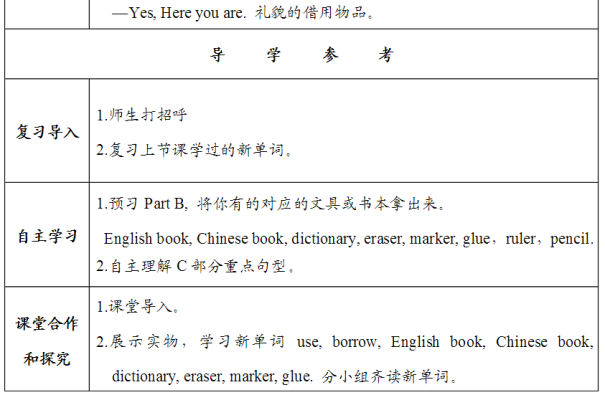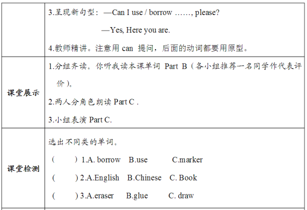 英语五年级上册Unit 4 Can I use your pencilplease?第二课时教学设计: