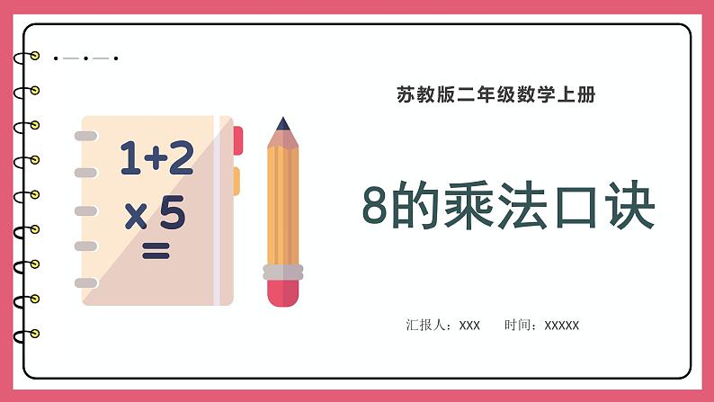 苏教版六 表内乘法和表内除法(二)公开课ppt课件: 这是一份苏教版六 表内乘法和表内除法(二)公开课ppt课件,文件包含苏教版2上数学63《8的乘法口诀》课件pptx、苏教版2上数学63《8的乘法口诀》教学设计docx等2份课件配套教学资源,其中PPT共17页, 欢迎下载使用。