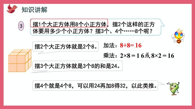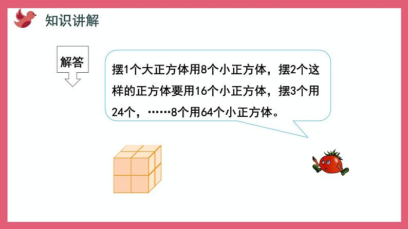 摆1个大正方体用8个小正方体,摆2个这样的正方体要用多少个小正方体?摆3个、4个……8个呢?