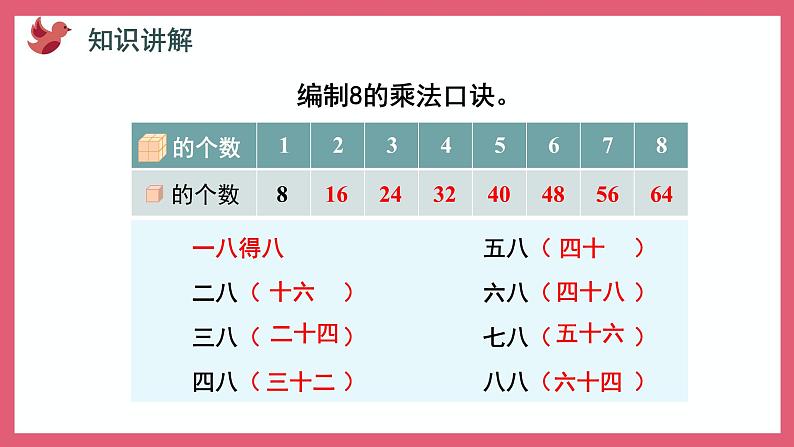小学数学人教版二年级上册8的乘法口诀公开课课件ppt: 这是一份小学数学人教版二年级上册8的乘法口诀公开课课件ppt