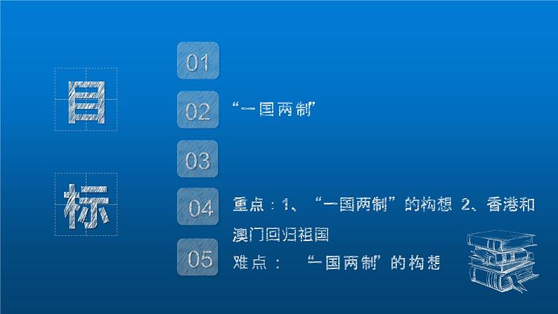 香港和澳门的回归延时符新界香港岛九龙1842年?南京条约?割占香港岛1860年?北京条约?割占九龙司一区1898年租借新界,为期99年香港问题的由来澳门问题的由来1553年,葡萄牙人借口晾晒水浸货物,强行进入澳门1557年,葡萄牙通过贿赂明朝官员,取得澳门的定居权19世纪五六十年代葡萄牙人先后侵占氹仔岛和路环岛。1887年,葡萄牙政府与清政府签定?中葡友好通商条约?,正式强占了澳门地区。“一国两制〞的设想1、“一国两制〞的背景:〔1〕香港问题、澳门问题和台湾问题都是历史遗留下来的。〔2〕解决这些问题,实现祖国统一,是整个中华民族的强烈愿望。〔背景、含义、影响〕一国两制的设想一国两制一个国家国家主权是统一的不可分割的。 两种制度在统一的中华人民共和国内,国家的主体实行社会主义制度,也就是大陆实行社会主义制度,港澳台地区实行资本主义制度和生活方式不变。 有利于港澳台地区的稳定、繁荣和开展。有利于实现祖国的统一〔前提〕影响含义谈 判中英谈判中英两国政府经过两年谈判,于1984年12月正式签署联合声明,宣布中华人民共和国政府将于1997年7月1日对香港恢复行使主权。1984年12月19日,中英两国政府在北京签署?关于香港问题的联合声明?谈 判中葡谈判1987年4月,中葡两国政府签署联合声明,宣布中华人民共和国政府将于1999年12月20日对澳门恢复行使主权。1987年4月中国政府和葡萄牙政府在北京签署?关于澳门问题的联合声明?回 归〔1〕香港回归1997年7月1日,中国正式对香港恢复行使主权。中华人民共和国香港特别行政区正式成立探究点二:回归〔2〕澳门回归1999年12月20日,中国正式对澳门恢复行使主权,澳门也回到了祖国的怀抱。港澳顺利回归的原因和启示原 因启 示1.香港澳门自古以来是中国的神圣领土 2.中国综合国力的增强 3.“一国两制〞的伟大设想4.全国人民的支持1、弱国无外交2、落后就要挨打, 开展才是硬道理 探究:意 义 香港、澳门回归祖国,标志着中国人民洗雪了百年国耻,在完成祖国统一大业的道路上迈出了重要一步。探究:联系当前台湾问题,你如何看待祖国统一前景?说出你的理由⑴台湾自古以来就是中国领土;⑶大陆经过改革开放后实力大增,两岸交流不断加深;⑵世界上普遍成认只有一个中国;⑷“和平统一、一国两制〞方针正确指引。我们相信祖国是一定能够统一的:课堂小结:香港和澳门的回归010203