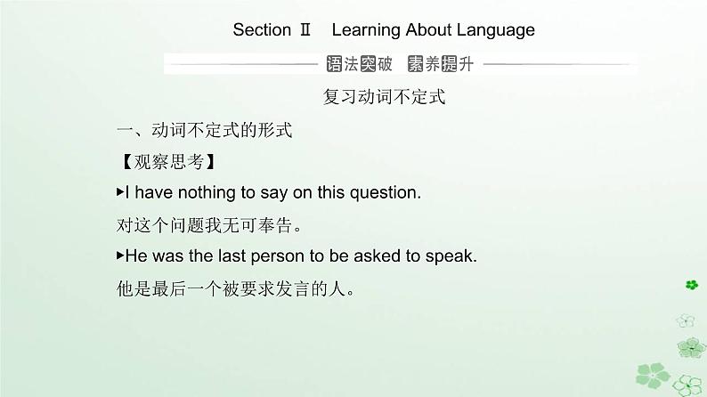 - 新教材2023高中英语Unit4SharingSectionIILearningAboutLanguage课件新人教版选择性必修第四册 课件 0 次下载