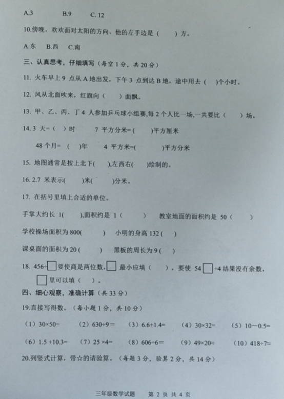 这是一份新疆维吾尔自治区喀什地区喀什市2022-2023学年三年级下学期期中数学试题,共4页。