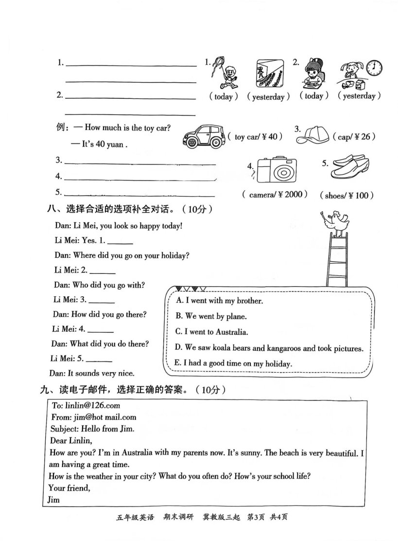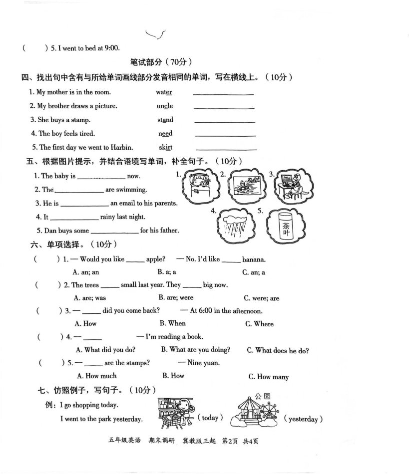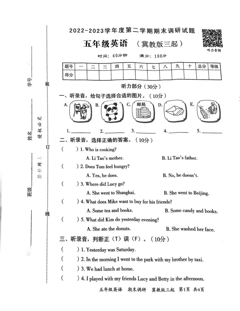 这是一份河北省邯郸市临漳县2022-2023学年五年级下学期6月期末英语试题,共4页。