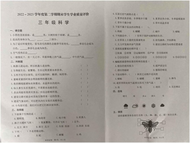 这是一份河北省石家庄市栾城区2022-2023学年三年级下学期期末考试科学试题,共1页。