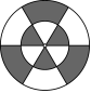 2.如图,在两个同心圆中,三条直径把大圆分成六等份,若在这个圆面上均匀地撒一把豆子,则豆子落在阴影部分的概率是1/2.