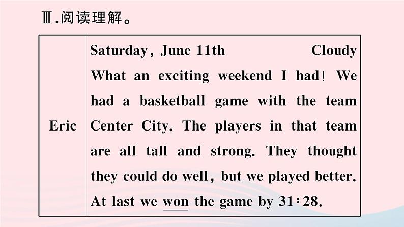 这是一份初中英语人教新目标 (Go for it) 版七年级下册Section B作业ppt课件,共14页。
