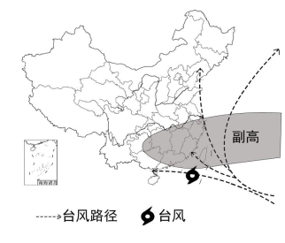 图24.一年中,北京地区昼长极大与极小值之差约( )A.4小时 B.6小时C.8小时 D.10小时5.此时,实景图中物体影子的朝向最接近( )A.正东 B.正西C.正南 D.正北6.实景图最可能拍摄于( )A.春分 B.小暑C.冬至 D.白露“副高”是大气环流的一个重要系统,对高、低纬度地区之间水、热输送和平衡起着重要的作用,对我国天气产生重要的影响。下图为西太平洋台风主要路径及某时副高位置示意 图。据此完成下面小题。![]()