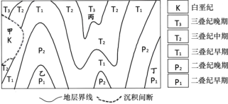 10. 图中四处的地质构造为向斜的是( )A. 甲 B. 乙 C. 丙 D. 丁11. 图中沉积间断缺失的地层属于( )A. 白垩纪 B. 侏罗纪 C. 三叠纪 D. 二叠纪12. 图中沉积间断发生时期甲区域( )A. 物种发生大量灭绝 B. 出现数次冷暖交替C. 地势先升高后降低 D. 蕨类植物高度繁盛径流系数指任意时间段内径流总量与同时间段内降水总量的比值。下图为“我国西部山地内某小流域景观类型图”,该流域多年平均降水量495mm,主要集中在7~9月,并随高 程增大而增加。植被覆盖与土壤发育相互影响。据此完成下面小题。![]()