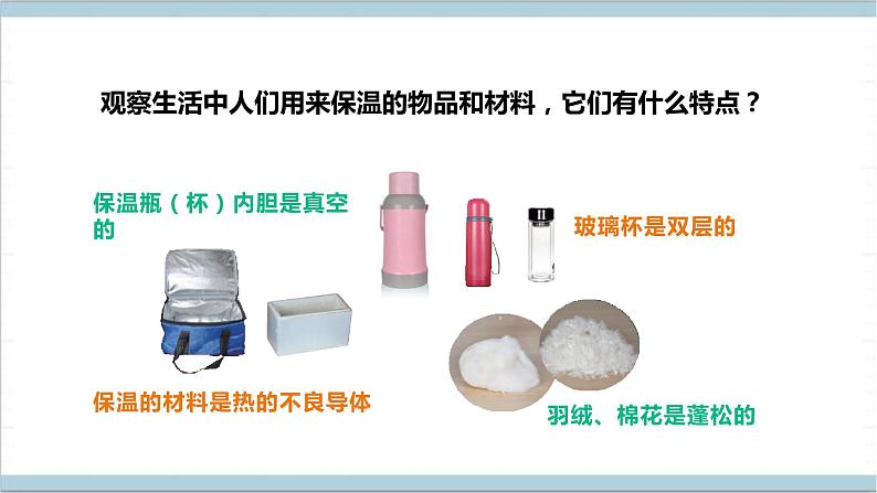 (1)生活中用到保温的地方有( )