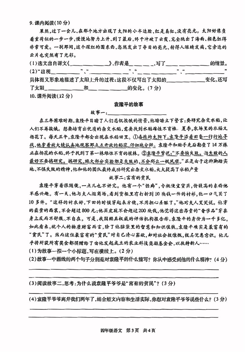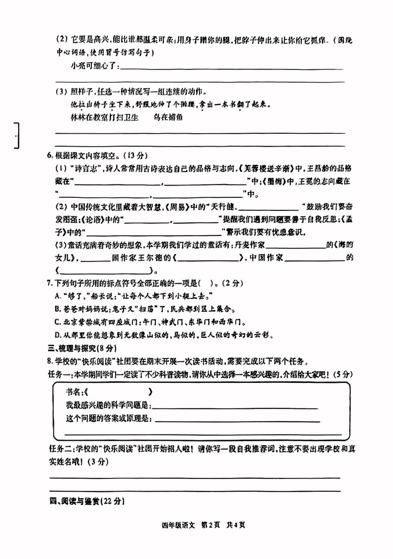 陕西省西安市雁塔区2022-2023学年四年级下学期期末语文试卷