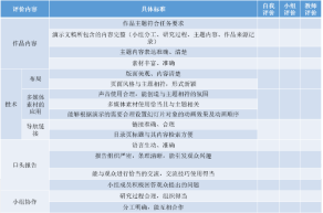 四、讨论制订交流汇报活动评价表 作品展示的评价表应包括对演示文稿的评价、汇报过程的评价以及对研究过程、分工合作的评价。 其中,对汇报过程的评价包括评价汇报人口头讲演和组织能力以及汇报过程中全组成员相互配合的情况。