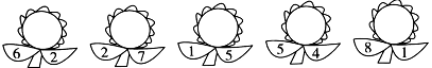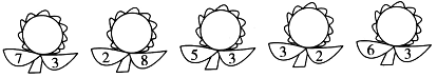 五、两片叶上的数字合起来是几?请你填在花朵里。(计10分)