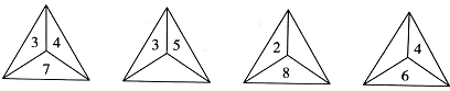 六、下面有一些数字,请用从中找出3组,每组3个数是好朋友。(计12分)