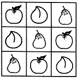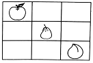 将三种水果适当地画在空格里,使横竖每行都有不同的水果。