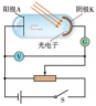 把一块锌板连接在验电器上,并使锌板带负电,验电器指针张开。用紫外线灯照射锌板,观察验电器指针的变化。这个现象说明了什么问题? 新课教学:一、光电效应1、概念:金属在光的照射下发射电子的现象被称为光电效应。2、光电子:在光电效应现象中发射出来的电子被称为光电子。3、光电管(1)光电管(2)光电流(3)光电管的工作原理:为了把光电子尽可能多地收集到阳极,以增强光电流,通常还在光电管两极加上正向电压。 二、光电效应的实验规律【思考问题】以上实验改用很强的白炽灯照射,却不能发生光电效应,这说明什么问题?