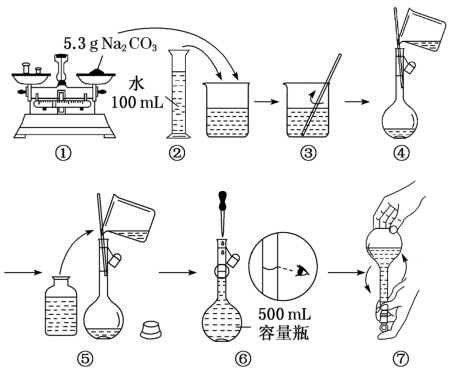 ⑦量取浓盐酸后,用蒸馏水洗涤量筒并转移至容量瓶中。