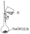②把称好的氢氧化钠放入一只100mL的烧杯中,加入约10mL水,搅拌使之溶解,溶解后立即用玻璃棒引流将溶液移至一只100mL的容量瓶内,加水至离刻度线约2cm处,用滴管加水至刻度线。