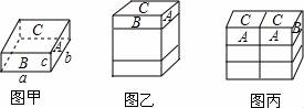 .27.解:(1)设:三个面的面积记为A=bc,B=ac,C=ab,①在1×6的方式下,打包方式如图乙,这时,表面积S乙=2C+12B+12A=2×11×7+12×11×2+12×7×2=586(cm2);②在2×3的方式下,打包方式如图丙,这时,表面积S丙=4C+6B+12A=4×11×7+6×11×2+12×7×2=608(cm2);因为S乙<S丙,所以最小表面积的打包方式是1×6.(2)若a≥b≥c,则单叠(即1*6方式)打包的最小表面积S=2ab+12ac+12bc;双叠(即2*3方式)打包最小表面积S'=4ab+6ac+12bc.所以S﹣S'=2a(3c﹣b).所以:当a≥b,且c≤b<3c时,最小表面积为双叠当a≥b>3c时,最小表面积为单叠当a≥b=3c时,两种方式一样大