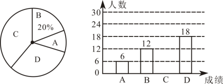 20. 某学校学生参加了“交通法规”知识竞赛,为了解全校学生竞赛成绩的情况,随机抽取了一部分学生的成绩,分成四组:A:60≤x<70;B:70≤x<80;C:80≤x<90;D:90≤x≤100.